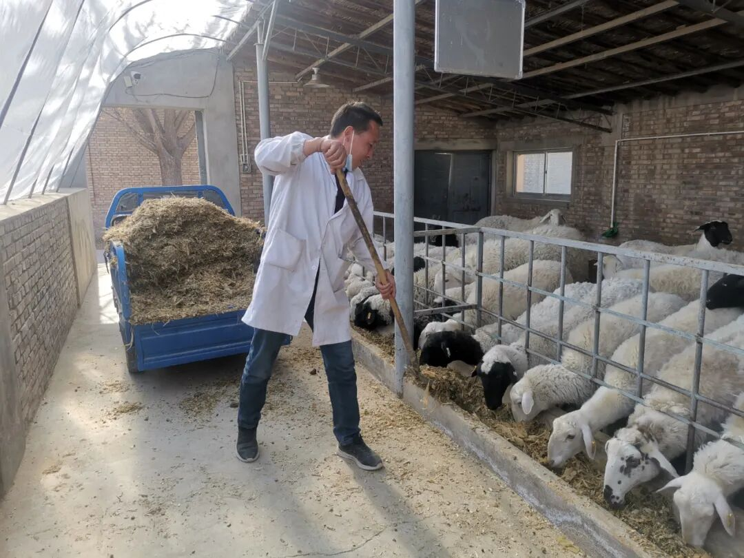 方大优尔塔饲养员正在给羊喂饲料