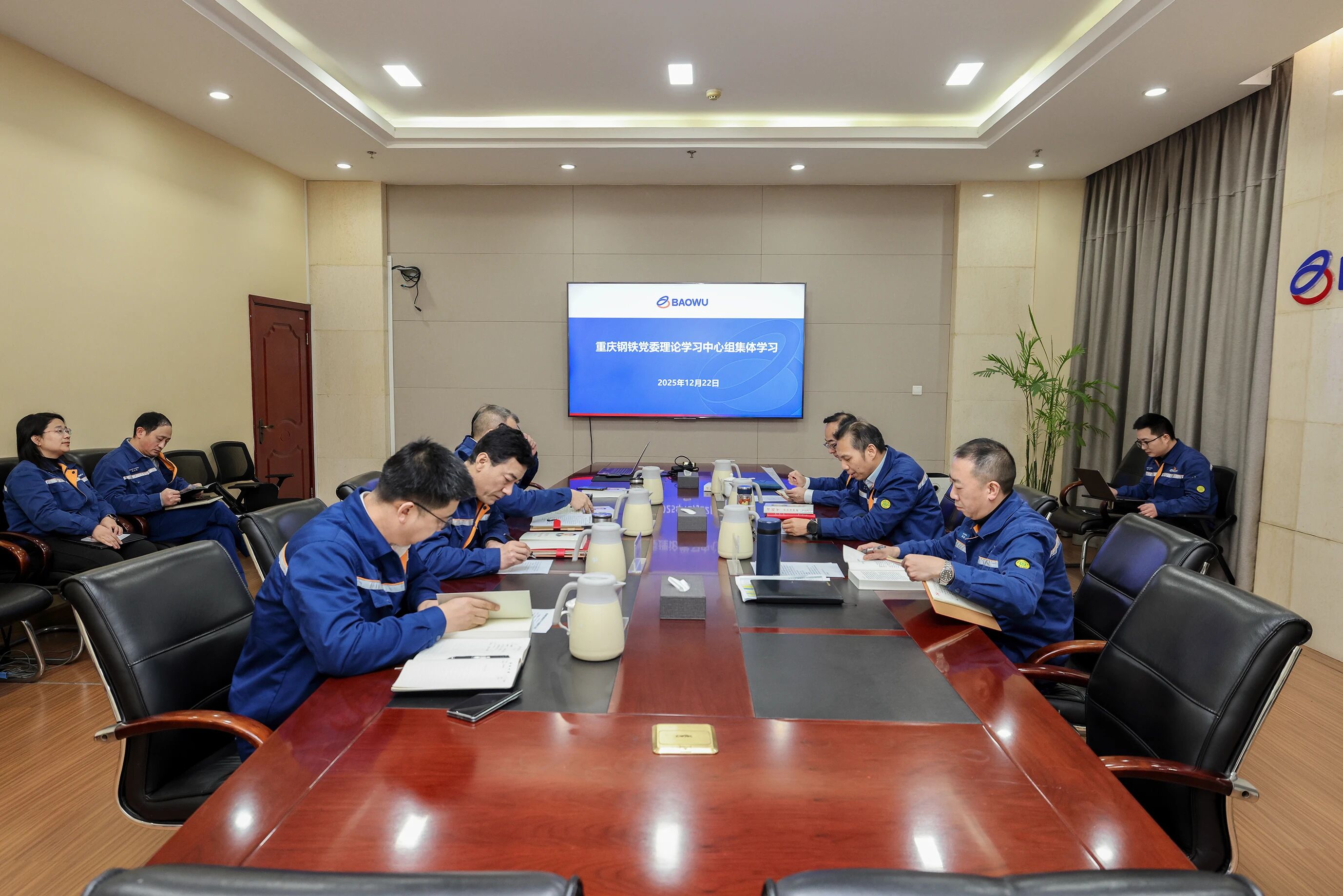 12月22日,重庆钢铁公司党委举行2025年度党委理论学习中心组第十次集体学习,系统学习了《习近平谈治国理政(第五卷)》、习近平论爱国统一战线、《中华人民共和国保守国家秘密法实施条例》和宝武集团“诚信宝武”倡议。该公司党委书记、董事长王虎祥主持学习并作学习小结,党委理论学习中心组成员参加学习。