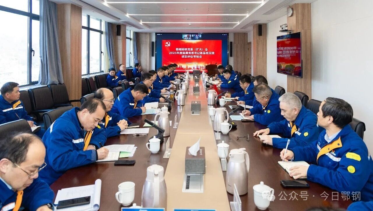 1月5日,鄂城钢铁公司召开党委(扩大)会暨2025年度直属党委书记抓基层党建述职评议考核会。会议以“现场+书面”相结合的方式,听取各直属党委书记抓基层党建述职,并进行现场评议和考核。该公司党委书记、董事长陆隆文作总结讲话,总裁、党委副书记黄大军现场点评,党委副书记、纪委书记曾撼宇主持会议。