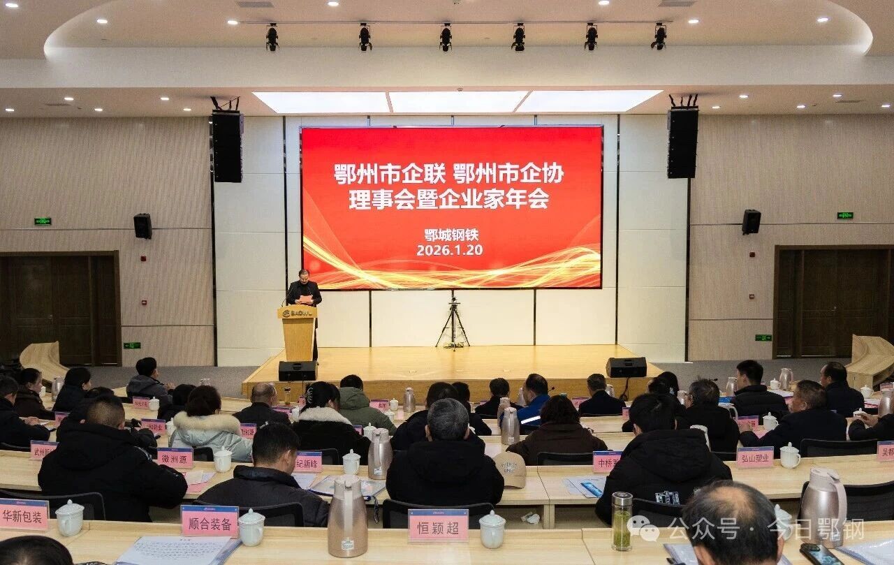 1月20日,鄂州市企业联合会、企业家协会理事会暨企业家年会在鄂城钢铁举行,谋划新一年发展蓝图,凝聚政企合力推动鄂州企业高质量发展。