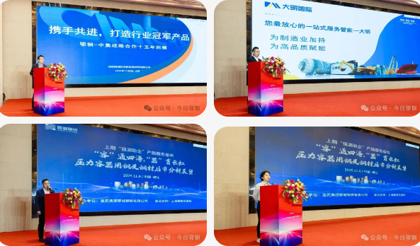 11月6日,秋意正浓、硕果盈枝的美好时节,公司在江海交汇第一洲 —— 魅力靖江举办容器钢产品推介会,来自设计研究院、期货交易所、产业链合作伙伴的130余位代表齐聚一堂,共同探讨容器钢技术的创新成果,共同展望高端装备应用新场景、产业链协同发展新未来。