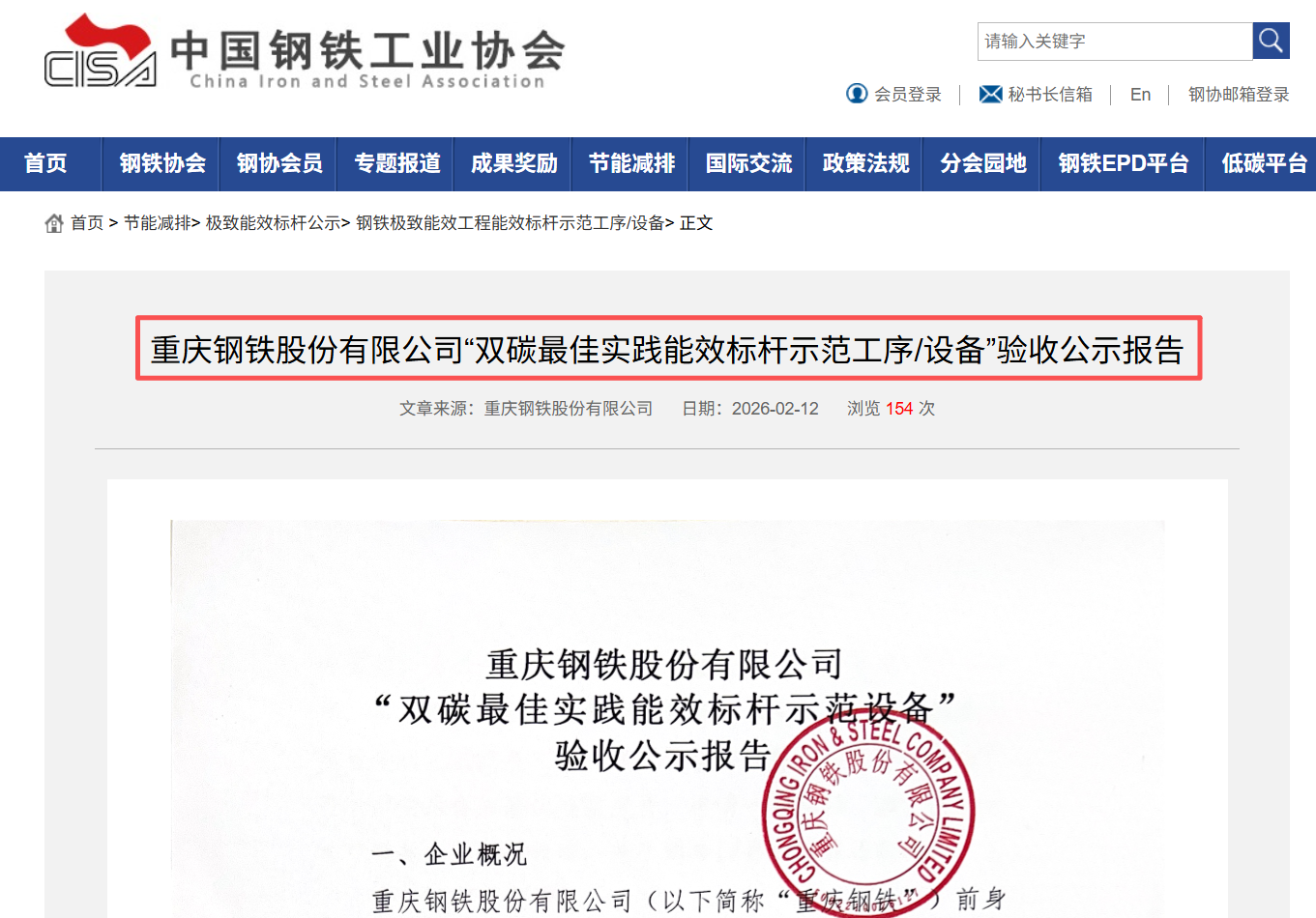 近日,中国钢铁工业协会网站正式公示“双碳最佳实践能效标杆示范设备”名单,重庆钢铁以转炉工序能耗-30.62kgce/t的良好成绩成功入选。这不仅是一次技术指标的提升,更是一家百年企业在时代变革中,以绿色为尺、以低碳为向,淬火的转型刻度。