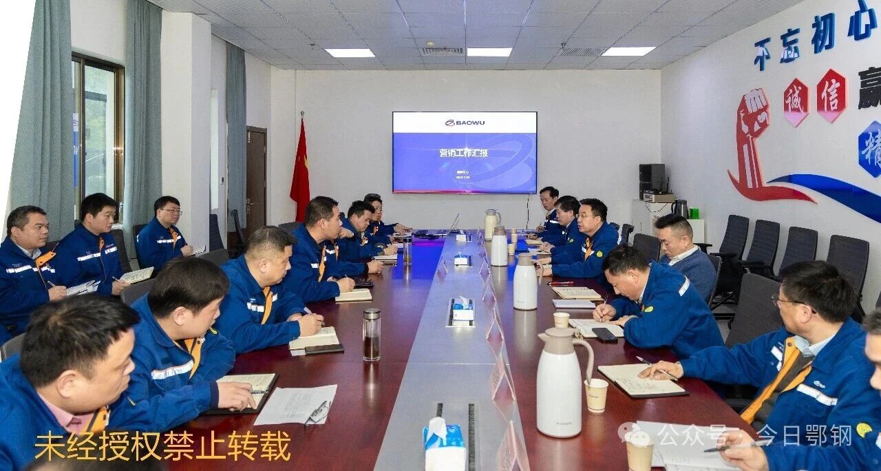2月26日,鄂城钢铁公司领导陆隆文、黄大军、夏峰、李云到营销中心调研并召开现场办公会,与班子成员、模块总监面对面交流,听取营销工作情况汇报,宣讲集团、中南、鄂钢职代会精神及形势任务,就重难点问题现场办公。