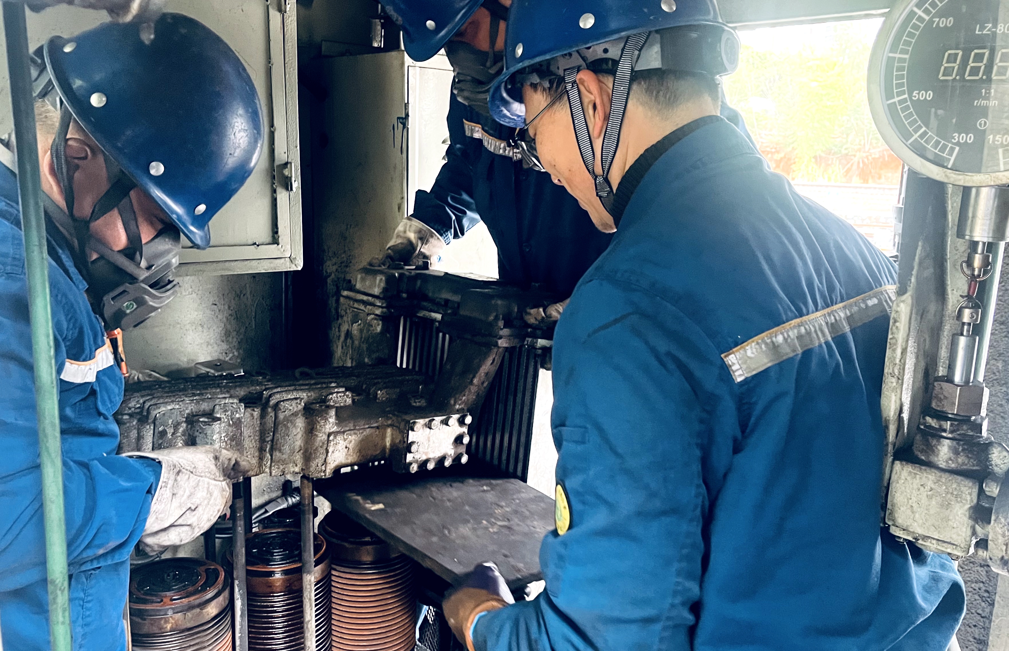 NPT5型空气压缩机是内燃机车制动与控制系统的核心设备,气缸盖重达153公斤,且安装空间狭小。以往检修需3人徒手抬放作业,不仅安全风险高、劳动强度大,还存在效率低、人工成本居高不下等问题。面对这一痛点,铁运车间检修班主动成立专项攻坚小组,摒弃高风险整体吊出方案,采用“标准化流程+专用工装”模式推进改进。
