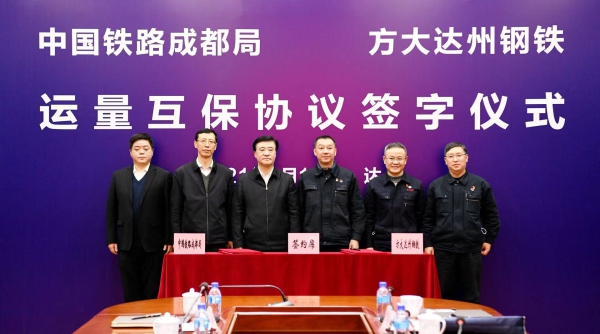 随后,在双方领导及全体参会人员的见证下,举行了本次运量互保协议签字仪式,仪式的成功举行标志着成都局集团公司与达州钢铁深化合作向更深层次和高水平迈进,为达州钢铁发展奠定了坚实基础。未来,在开启全方位的战略合作后,成都局集团公司将充分利用自身资源优势,不断拓宽合作思路,扩展合作领域,全力支持和服务好达州钢铁的发展。( 秦雪梅 张阳爽)