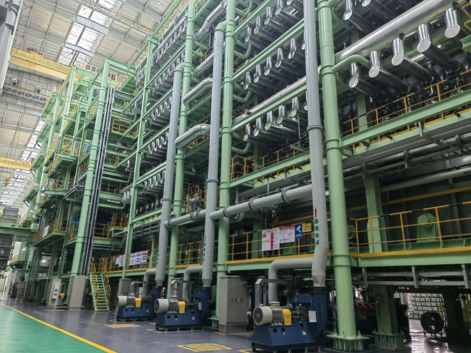 退火炉采用预氧化技术、高速冷却技术、稳定通板技术,用于满足超高强钢生产工艺要求,有效保障产品质量;同时采用余热梯级利用、数学模型、智能控制等绿色化、智能化技术,生产过程中有效控制能耗,实现超低排放目标。