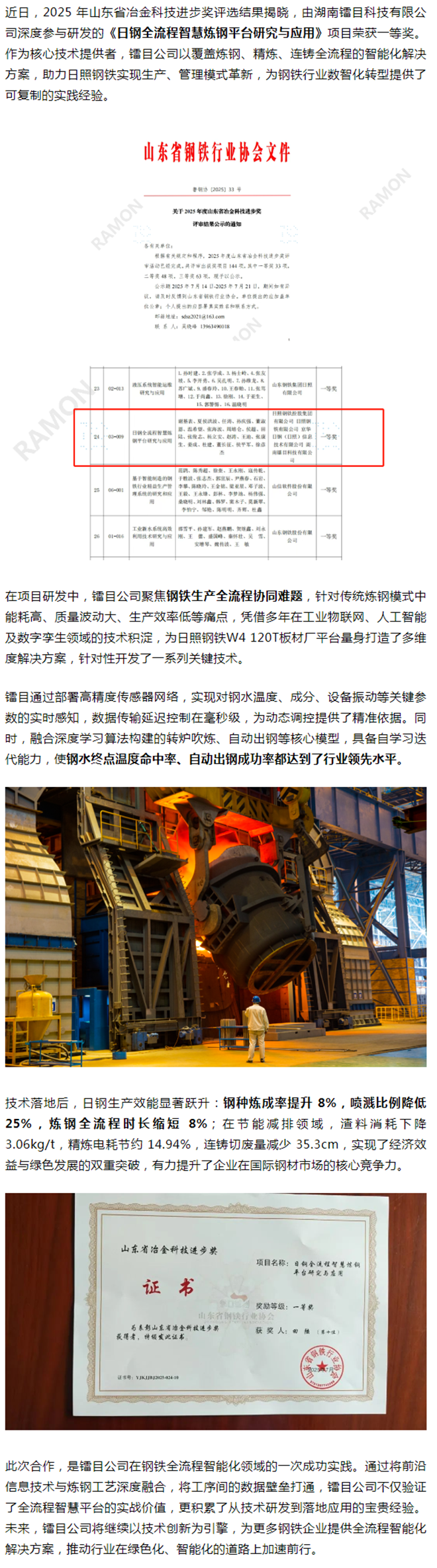 《日钢全流程智慧炼钢平台研究与应用》项目荣获山东省冶金科技进步一等奖
