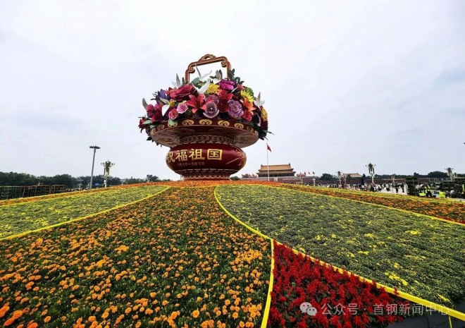 2025年是首钢建设钢构分公司连续第18年承担国庆天安门主题景观花篮的制作安装任务。十多年来,首钢建设充分发扬首钢人讲政治、能扛活、有情怀的鲜明特质,克服各种困难,连续18年零差错圆满完成各项施工任务,在天安门广场为共和国献礼,尽情展示对伟大祖国的热爱。