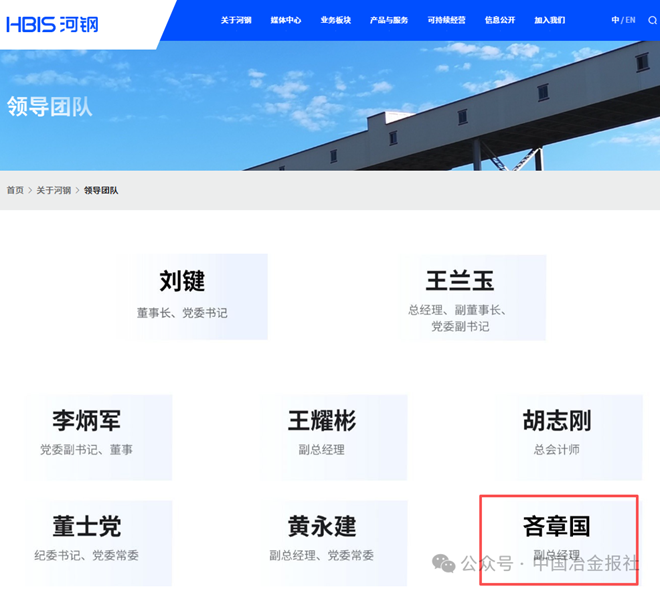据河钢集团官网显示,新增一位副总经理。舞钢公司党委书记、董事长吝章国已任河钢集团副总经理。