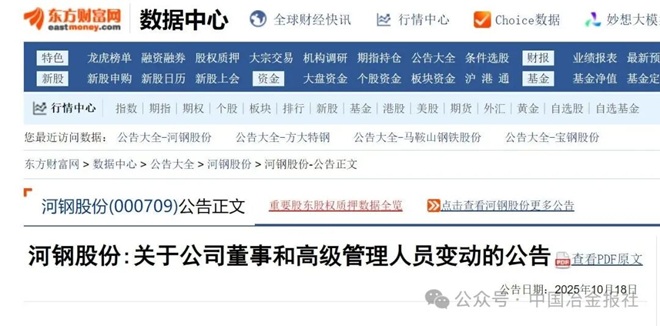 河钢股份10月18日发布公告,河钢股份有限公司董事会于近日接到董事长王兰玉和副董事长、总经理许斌、总会计师张爱民递交的书面辞职申请。王兰玉因工作变动辞去董事长及董事职务,许斌因工作变动辞去总经理、副董事长及董事职务,张爱民因工作变动辞去总会计师职务。王兰玉、许斌、张爱民担任原职务的原定任期到期日为公司第六届董事会任期届满之日,其辞职自辞职申请送达公司董事会时生效。辞职后,王兰玉、许斌不再在本公司担任任何职务;张爱民将担任公司副董事长、总经理。