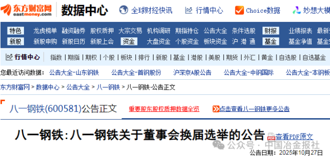 10月27日,八一钢铁发布了关于董事会换届选举的公告。