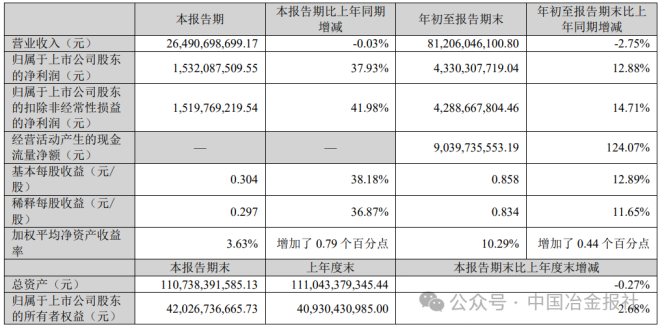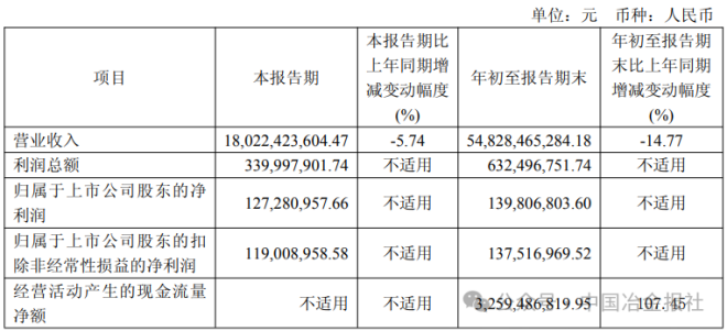 《报告》数据显示,2025年1-9月,南京钢铁股份有限公司实现营业收入432.83亿元,同比下降12.19%;实现归属于上市公司股东的净利润21.76亿元,同比增长24.12%;加权平均净资产收益率8.12%,同比增加1.41个百分点。截至报告期末,公司总资产为701.28亿元,比上年度末增长1.48%;归属于上市公司股东的所有者权益269.62亿元,比上年度末增长3.59%。