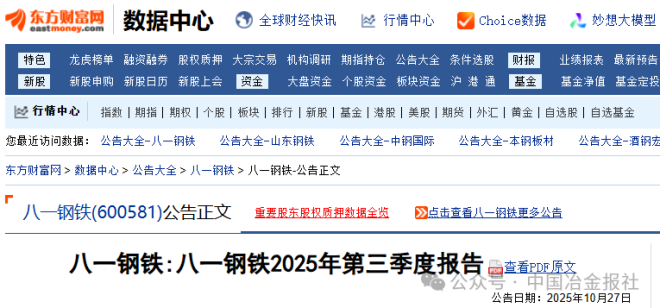 10月27日,八一钢铁发布《八一钢铁2025年第三季度报告》。