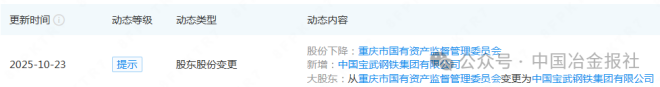 近日,重庆钢铁(集团)有限责任公司(简称:重钢集团)完成工商变更,中国宝武钢铁集团有限公司(简称:中国宝武)认缴出资额约14.86亿元,控股90%,正式成为重钢集团控股股东。此次股权变更前,重钢集团由重庆市国资委全资控股。