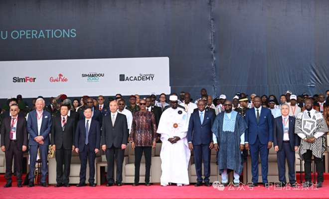 位于非洲西部的几内亚共和国的西芒杜铁矿项目是全球质量最优、规模最大的矿山项目之一,工程涵盖矿山、铁路、港口等系统,总投资逾200亿美元。其中,矿山分为北部、南部两个区块。2024年6月西芒杜北部区块项目进入实质性建设阶段以来,宝武协同各股东方和参建单位采用“中国标准”“中国设计”“中国施工”“中国装备”,奋战在项目建设一线,克服了多重挑战,提前实现矿山、铁路、港口全线建成,高质高效完成项目投产目标。