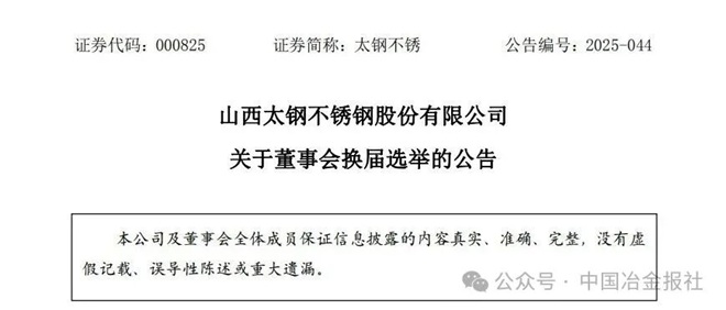 太钢不锈12月3日晚间发布《关于董事会换届选举的公告》,2025年12月3日,公司召开第九届董事会第三十八次会议,审议通过了《关于公司董事会换届选举的议案》。