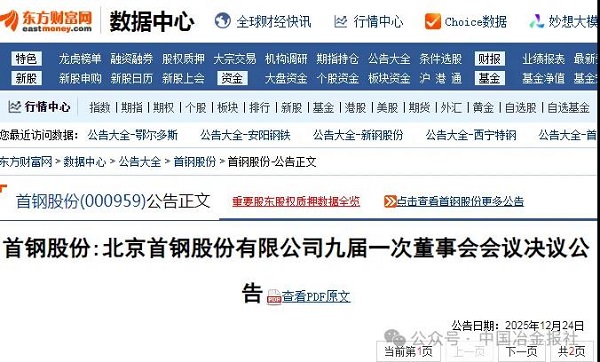 12月24日,首钢股份发布了九届一次董事会会议决议公告(以下简称“公告”)。