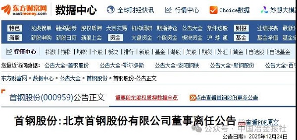 同日,首钢股份发布了董事离任公告(以下简称“公告”)。