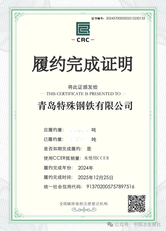 近日,青岛特钢严格按照全国碳市场相关规范要求,圆满完成年度碳排放配额清缴履约工作。作为钢铁行业首次纳入全国碳市场管控的关键年度,此次履约的顺利完成,标志着公司在全国碳市场交易取得阶段性成果,为后续深度参与碳市场、践行绿色发展奠定了坚实基础。