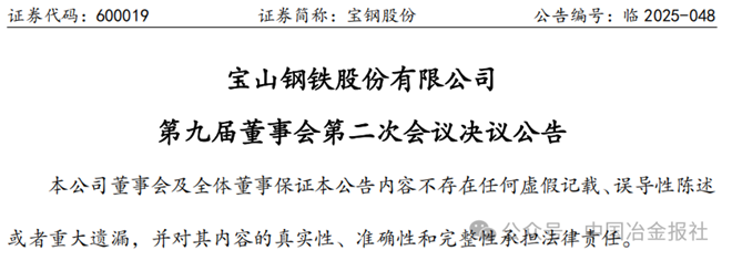 此前,据宝钢股份2025年8月27日公告,董事会批准《关于投资建设宝钢无缝钢管精品基地项目(一期)并设立独资子公司的议案》。为落实将精品长材打造成公司第三大战略产品规划,强化钢管长材产品在国内的战略布局,补齐中口径无缝钢管规格组距,提升宝钢钢管竞争力,宝钢股份以30.85亿元现金增资全资子公司宝钢管业科技有限公司(以下简称“宝钢管业”),由宝钢管业以30.85亿元现金独资设立宝钢钢管(马鞍山)科技有限责任公司(暂定名),并实施宝钢无缝钢管精品基地项目(一期),项目总投资49.6亿元(含税)。