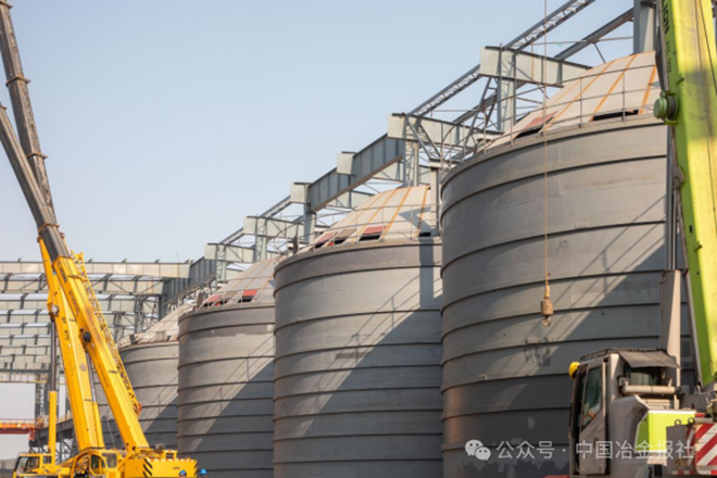 “钢板筒仓项目是东方特钢首次使用筒仓存储石灰,改变了传统的人工上料模式,也是华天首个钢板类筒仓设计、制作和安装项目,每个仓体直径13米、高度12.3米,6个筒仓合计存储5100吨石灰,能同时满足200吨/小时的输送量”,中冶华天振石集团东方特钢石灰钢板筒仓工程项目经理杨建介绍,有别于其他混凝土筒仓的正序施工,该钢板筒仓采用倒装法施工,充分发挥公司专业技术实力,制定可靠的安装方案,最终采用DHP环链电动提升机,筒仓提升时中央控制一键同时启动,全部匀速提升,历时整整一个月,已安全顺利完成。