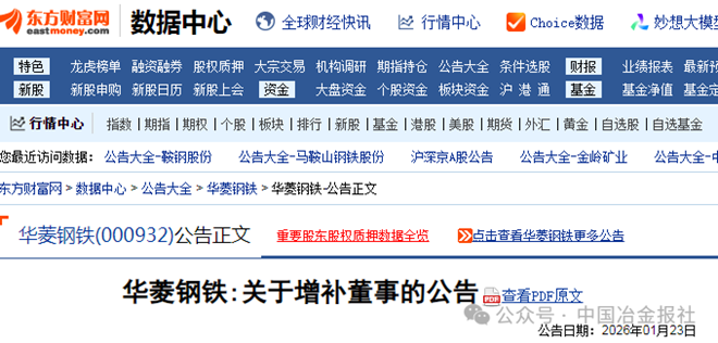 1月23日,华菱钢铁发布了关于增补董事的公告(以下简称“公告”)。