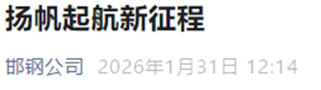 1月31日,邯钢公司微信公众号发布《扬帆起航新征程》一文。