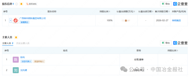 企查查股权穿透显示,该公司由广西柳州钢铁集团有限公司全资持股。