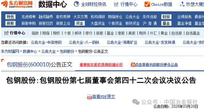 3月20日,包钢股份发布了第七届董事会第四十二次会议决议公告(以下简称公告)。