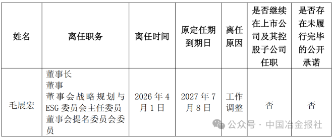 董事候选人郭小龙经股东会选举为该公司董事,董事会拟选举郭小龙为第八届董事会董事长、董事会战略规划与ESG 委员会主任委员、董事会提名委员会委员,任期至本届董事会任期届满为止。因工作调整,毛展宏申请辞去公司董事长、董事及董事会专门委员会委员职务。