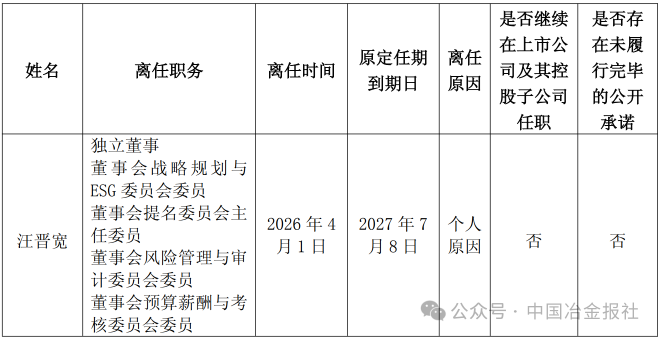 因个人原因,汪晋宽申请辞去公司独立董事及董事会专门委员会委员职务。