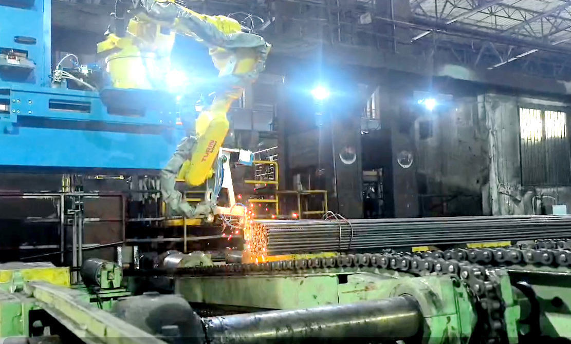 宝武集团中南股份轧材厂棒一工序在线机器人智能焊牌系统在相关方面的共同努力下,于近日准点完工,具备热试投用条件。