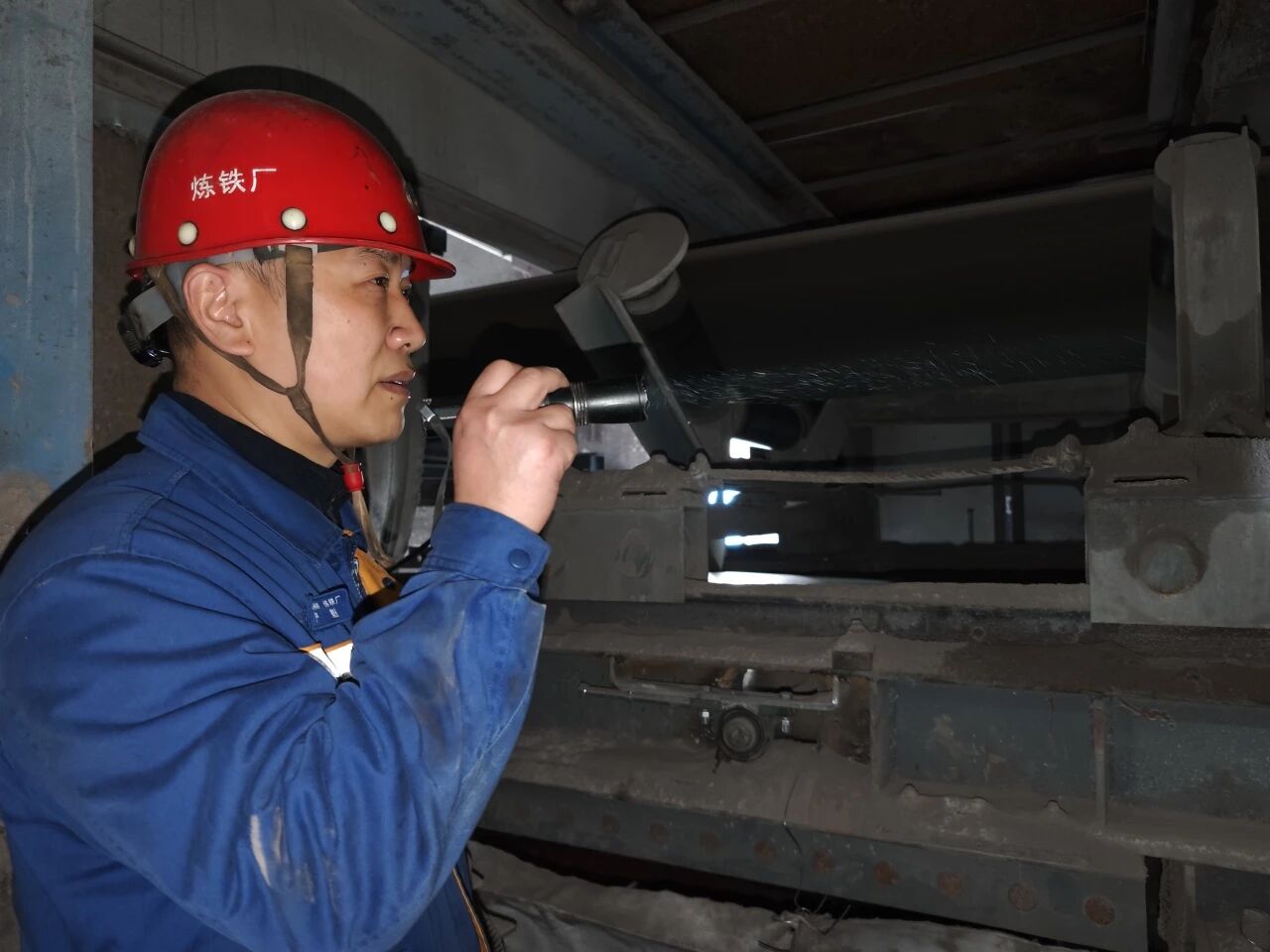 “又漏料了!”混一皮带旁通下料口,烧结车间首操师严魁紧锁眉头。这个问题已经困扰车间很久了,车间每年因此损失的生产时间,算下来不是个小数目。严魁和团队成员一起,展开了一场“头脑风暴”,并立即展开技术攻关,让物料准确无误地落到旁通皮带进料口。