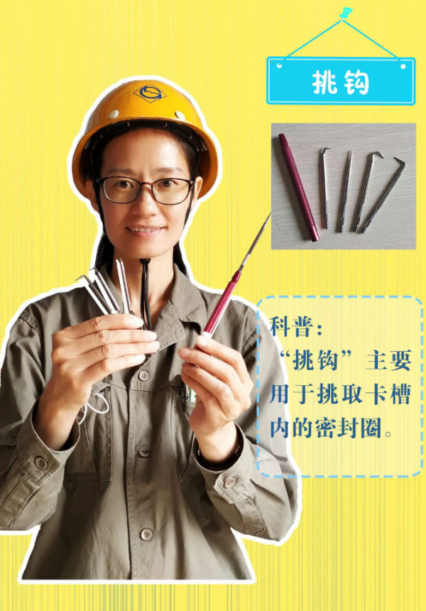 我的“老伙计”——密封圈挑钩,个体不大,作用非凡。密封圈总是紧紧卡在槽内,当要更换它时,用手抠,无从下手;用螺丝刀,内密封圈够不到还容易损坏轴表面。有了这个“老伙计”,戳、勾、扯,几个动作密封圈完美取下。