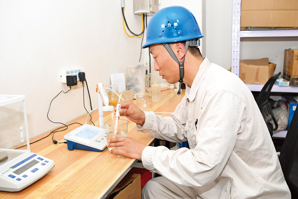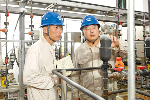 图为攻关团队成员检查自动加药系统运行情况。