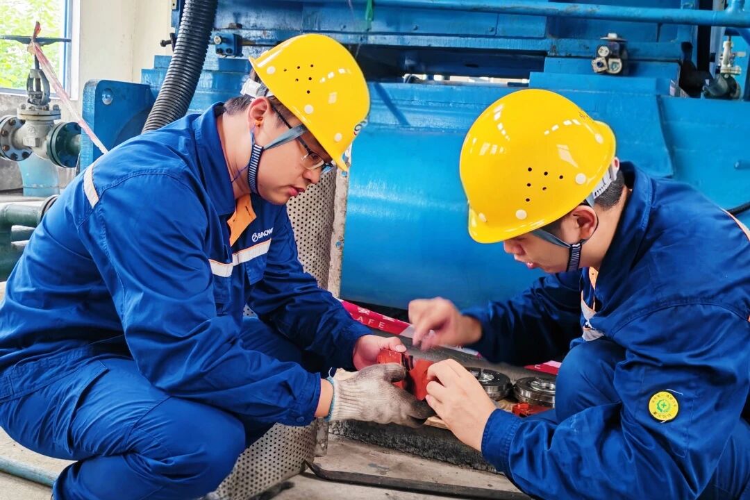 作为一名维修钳工,田刚练就了一双善于发现细节的眼睛。设备多一声异响,拆下来多一道压痕,他都默默记在心里。“问题可能出在操作方式上。”田刚沉下心来,蹲在设备旁,一遍遍看同事操作,看吊装轨迹,看密封受压变形的位置,看顶丝拆卸时的角度。他发现,如果能绕过箱盖直接操作内部关键点,很多麻烦就能规避。