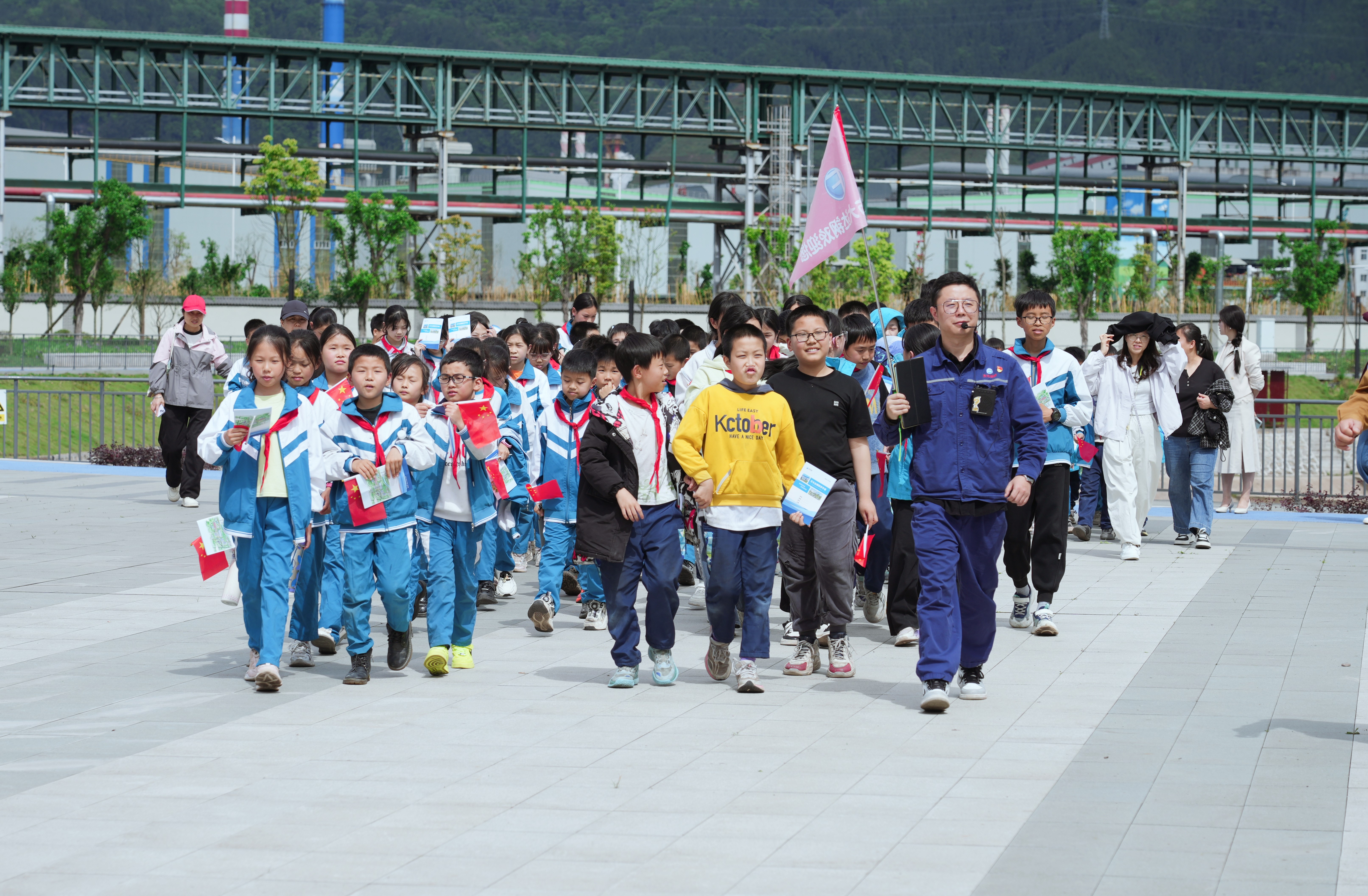 4月23日,来自达州东部经开区麻柳镇中心小学的100余名学生代表走进方大达钢景区,开展“研学游”活动,成为景区迎来的首批学生研学团队。