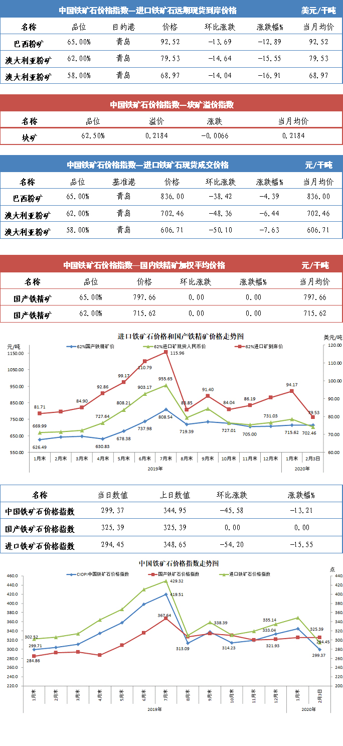 【行业指数】2月3日中国铁矿石价格指数