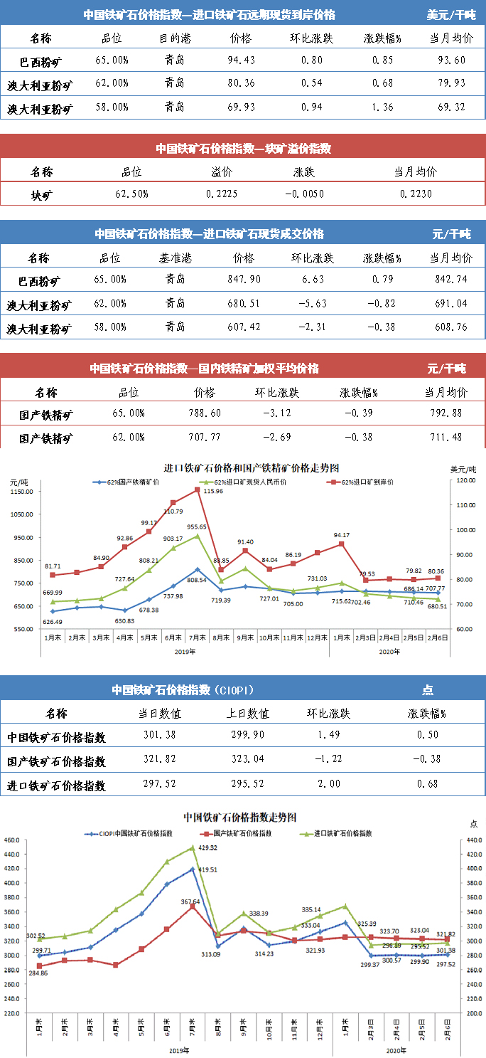 【行业指数】2月6日中国铁矿石价格指数