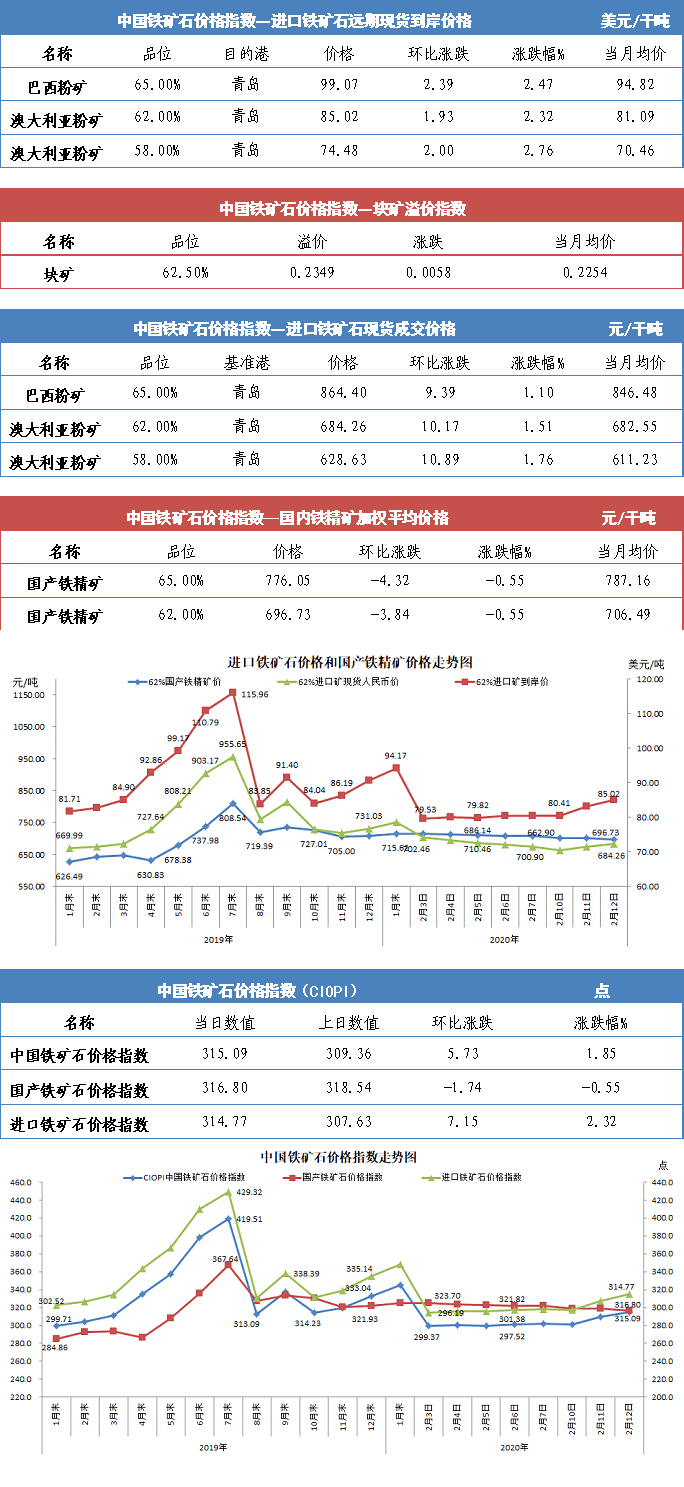 【行业指数】2月12日中国铁矿石价格指数