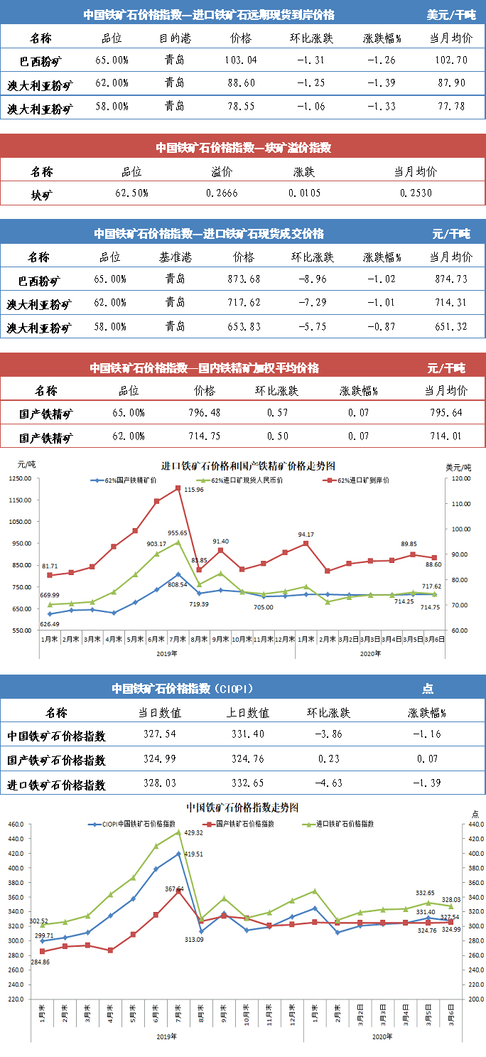 【行业指数】3月6日中国铁矿石价格指数