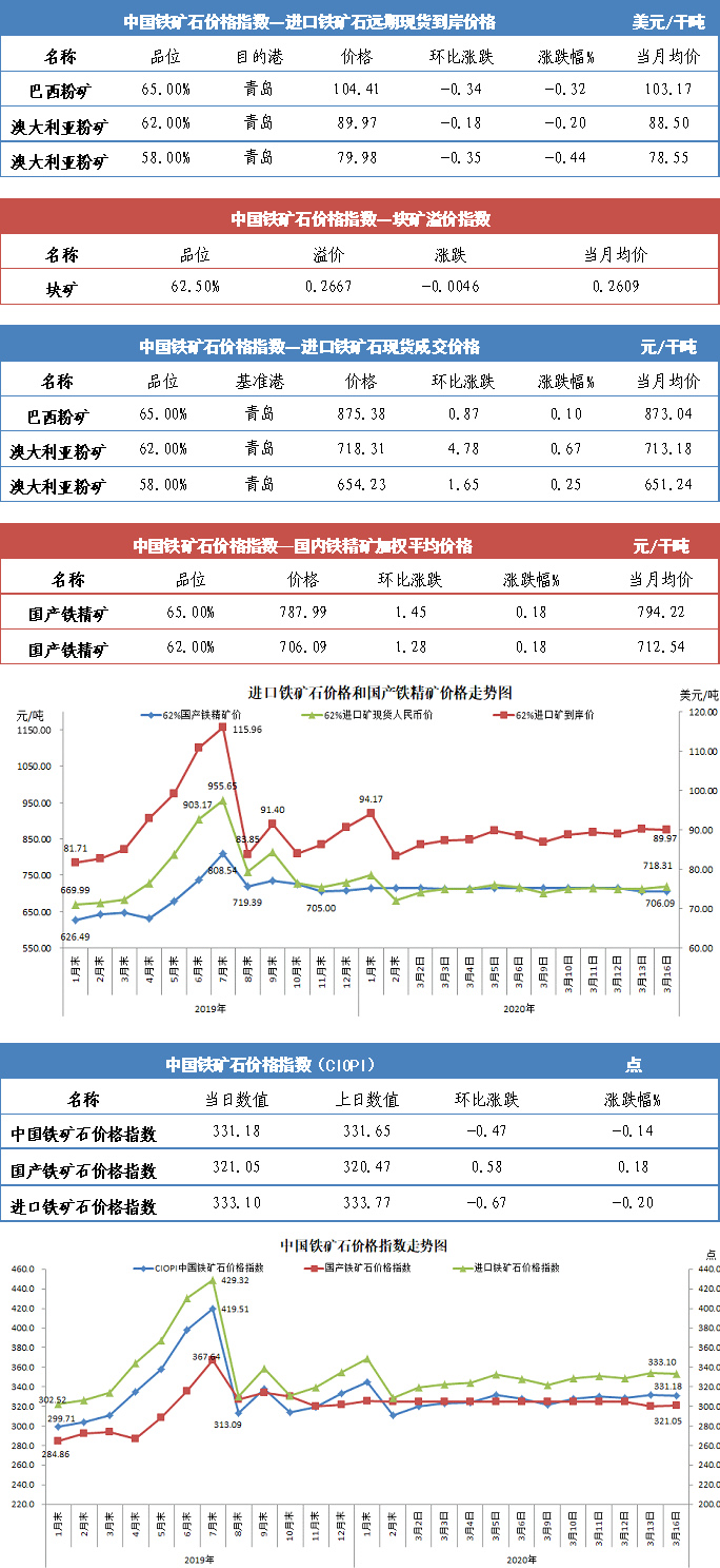 【行业指数】3月16日中国铁矿石价格指数