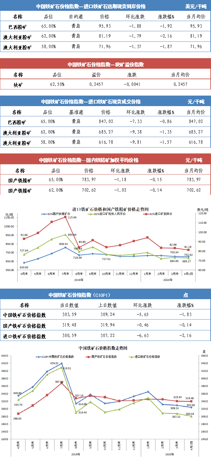 【行业指数】4月1日中国铁矿石价格指数