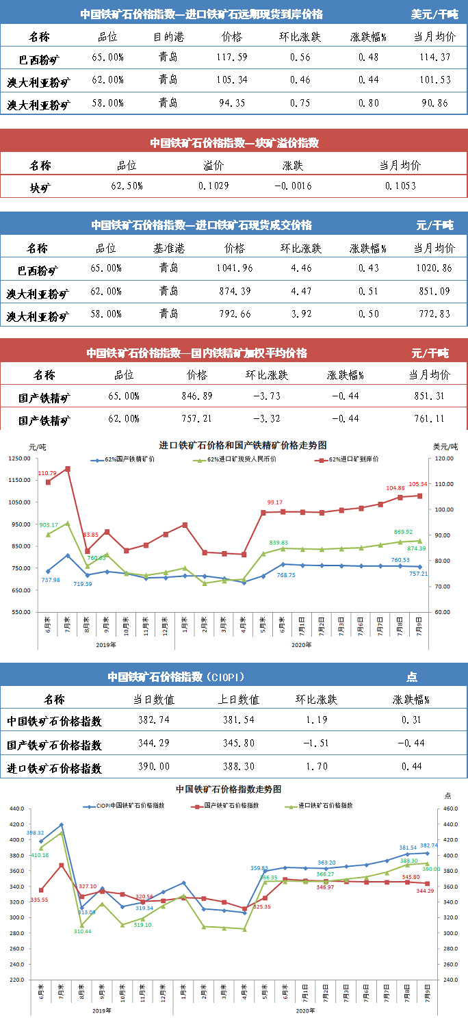 【行业指数】7月9日中国铁矿石价格指数