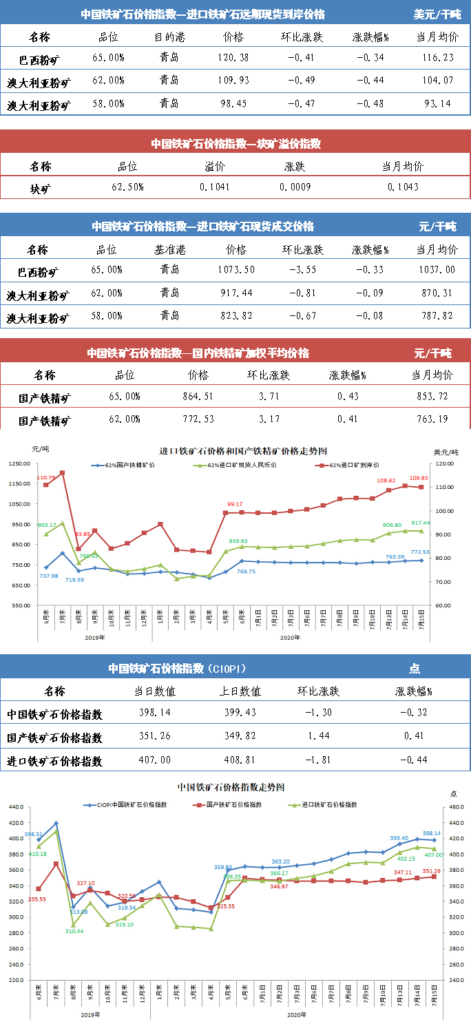 【行业指数】7月15日中国铁矿石价格指数