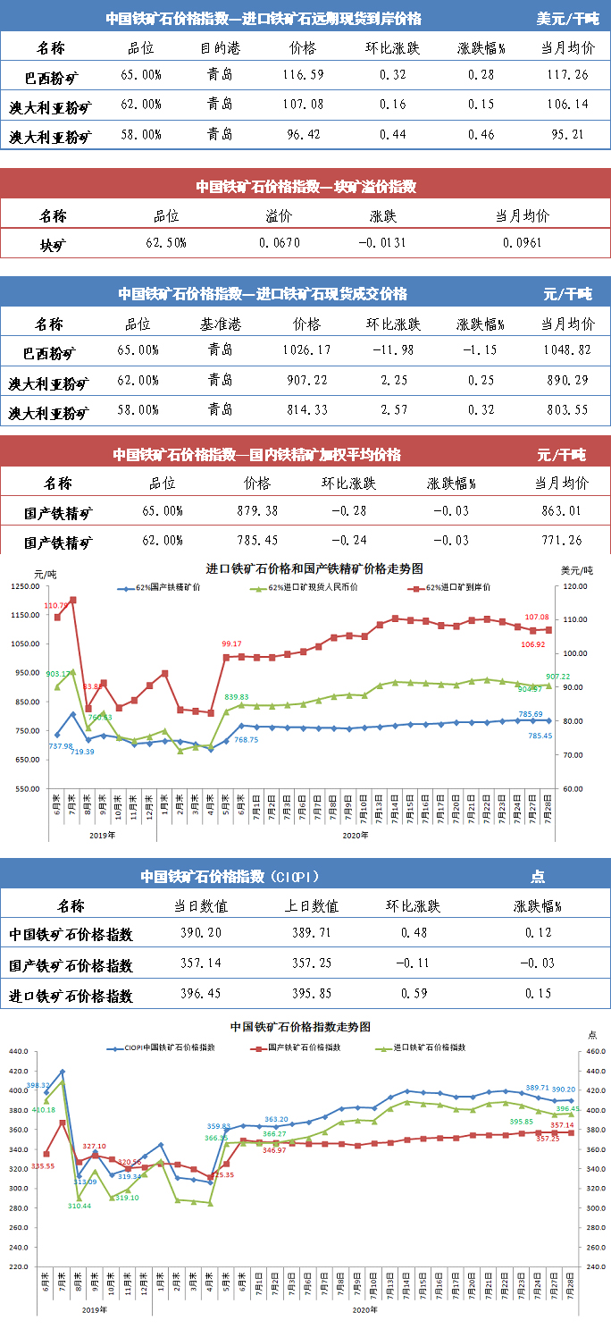 【行业指数】7月28日中国铁矿石价格指数