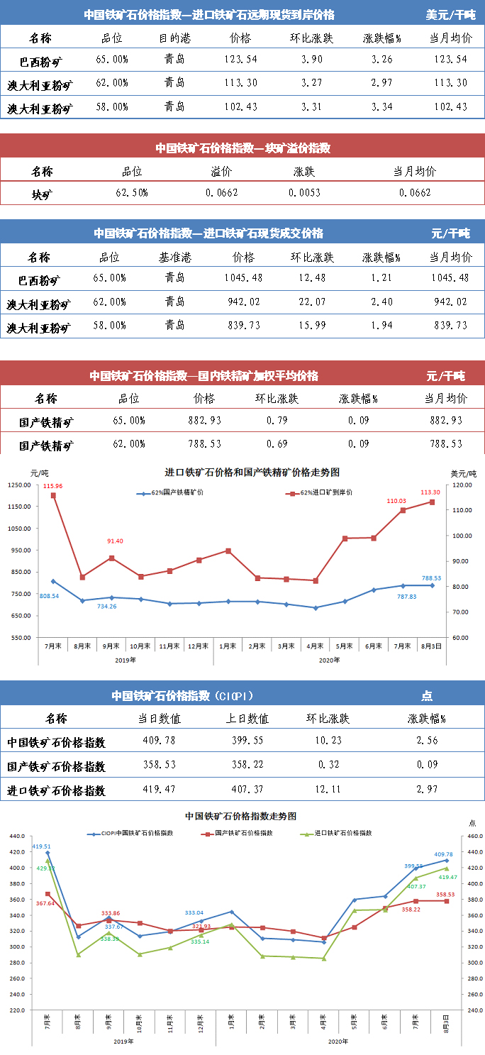 【行业指数】8月3日中国铁矿石价格指数