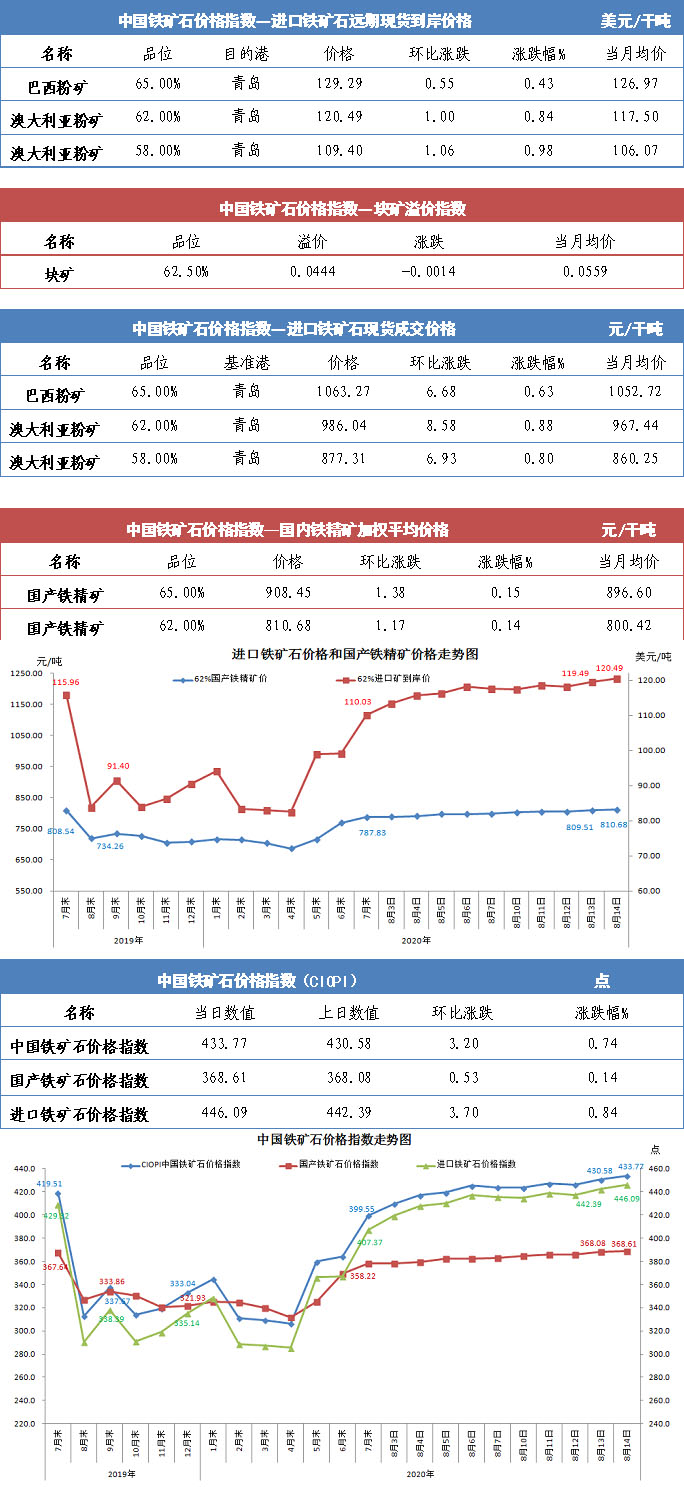 【行业指数】8月14日中国铁矿石价格指数