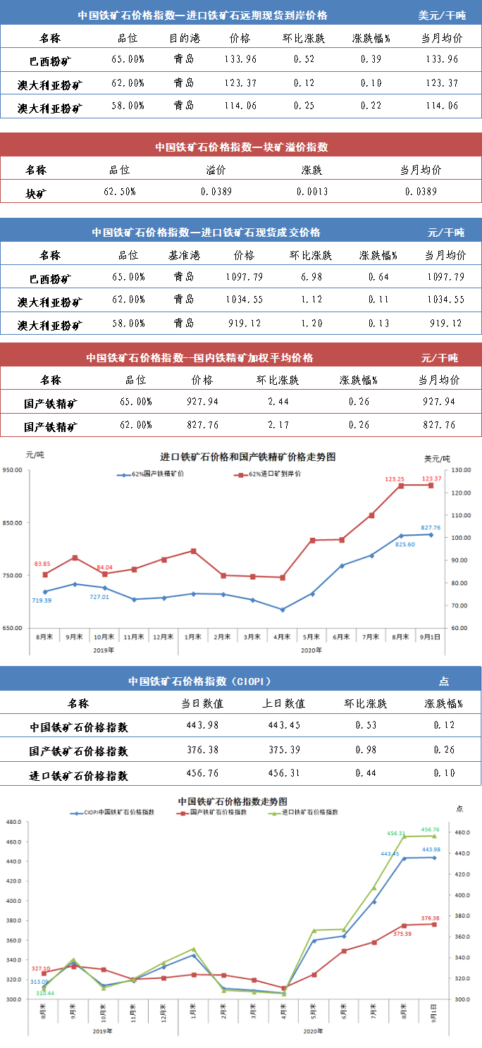【行业指数】9月1日中国铁矿石价格指数