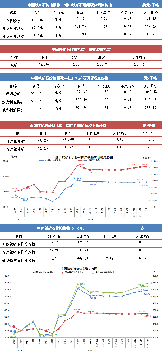 【行业指数】11月12日中国铁矿石价格指数